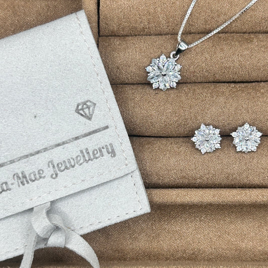 Crystal Blossom Pendant on Silver Box Chain Necklace