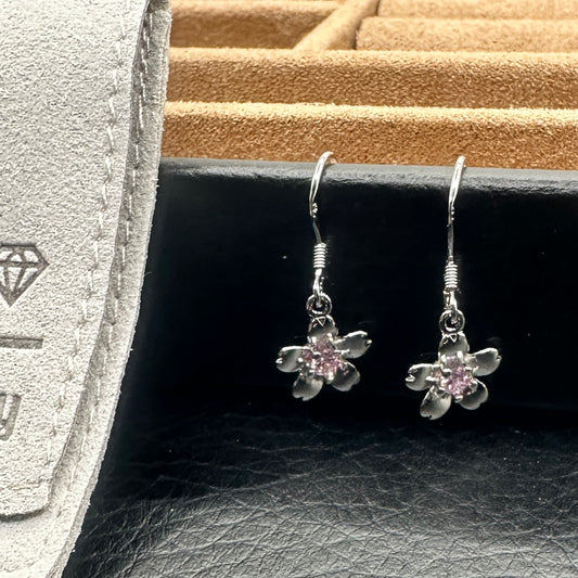 Pink Crystal Daisy Drop Earrings
