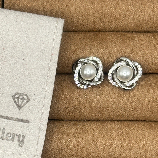Orbit Twist Pearl & Crystal Silver Stud Earrings