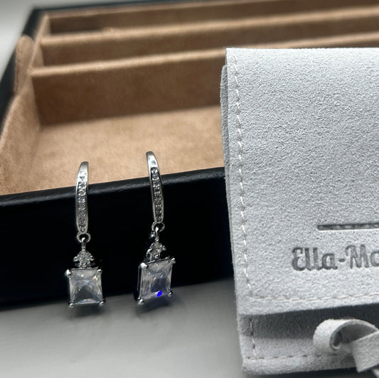 Rectangular Drop Princess Cut Earrings With Pave Bale
