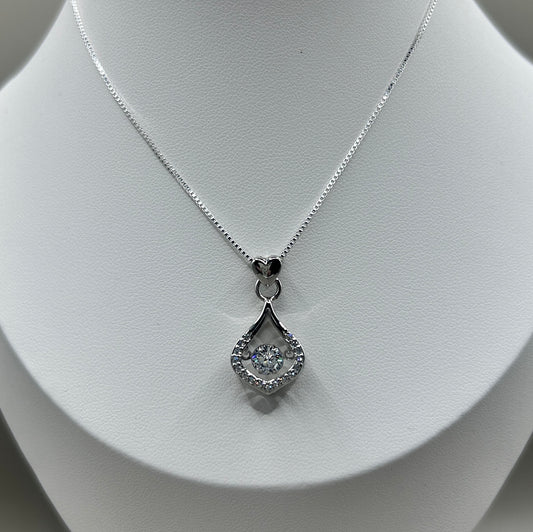 Silver Heart Dangling Cubic Zirconia Pendant Necklace