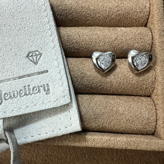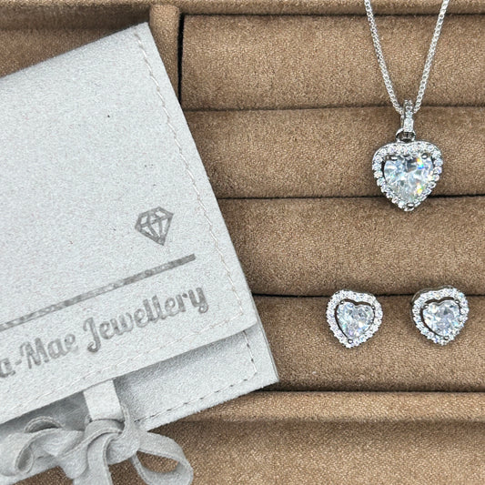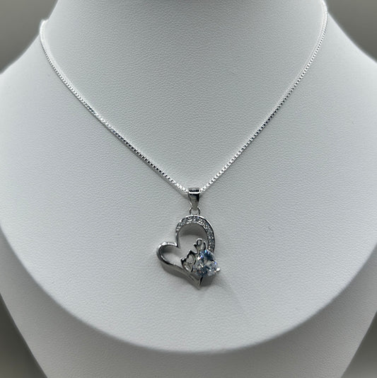 Love Heart Cubic Zirconia Silver Pendant on Box Chain Necklace